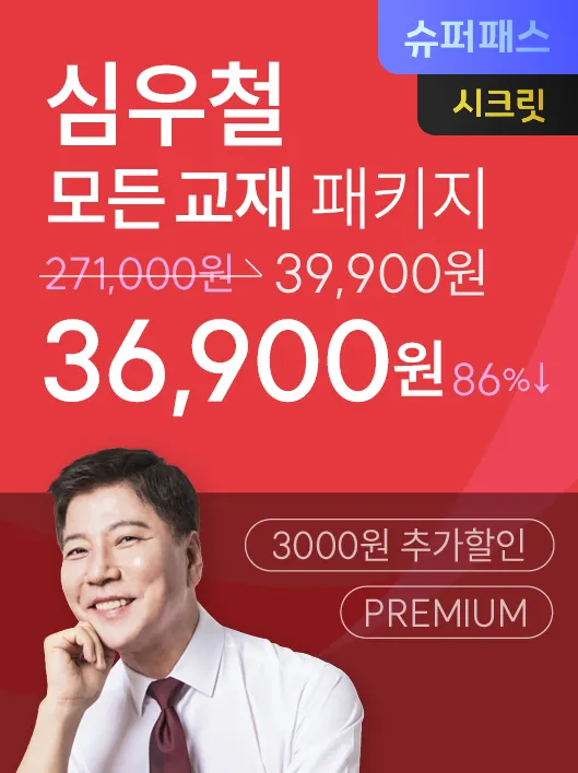 영어 | 심우철 | [슈퍼패스] 심우철 모든 교재 패키지 PREMIUM | 22종+ | 271,000원 | 39,900원 | 36,900원 |